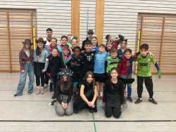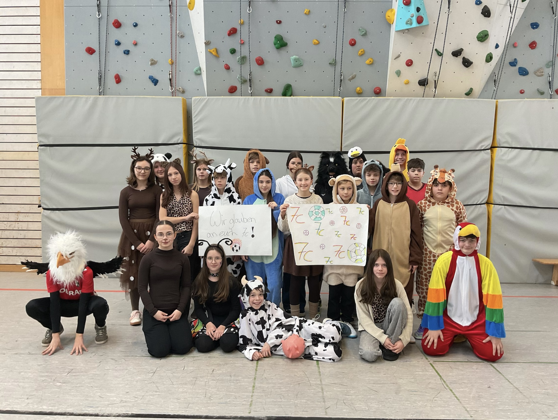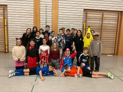 In alter Tradition hat die SMV wieder ein erfolgreiches Sport-Turnier organisiert. In diesem Jahr konnten sich die Klassen 5-7 in ihren Kostümen im Fussball messen. Unter der Leitung der SMV-Lehrerinnen Frau Guerra und Frau Wendling standen sich die Klassen in packenden Spielen gegenüber, während die Klasse 10d für Bewirtung und gute Stimmung sorgte.