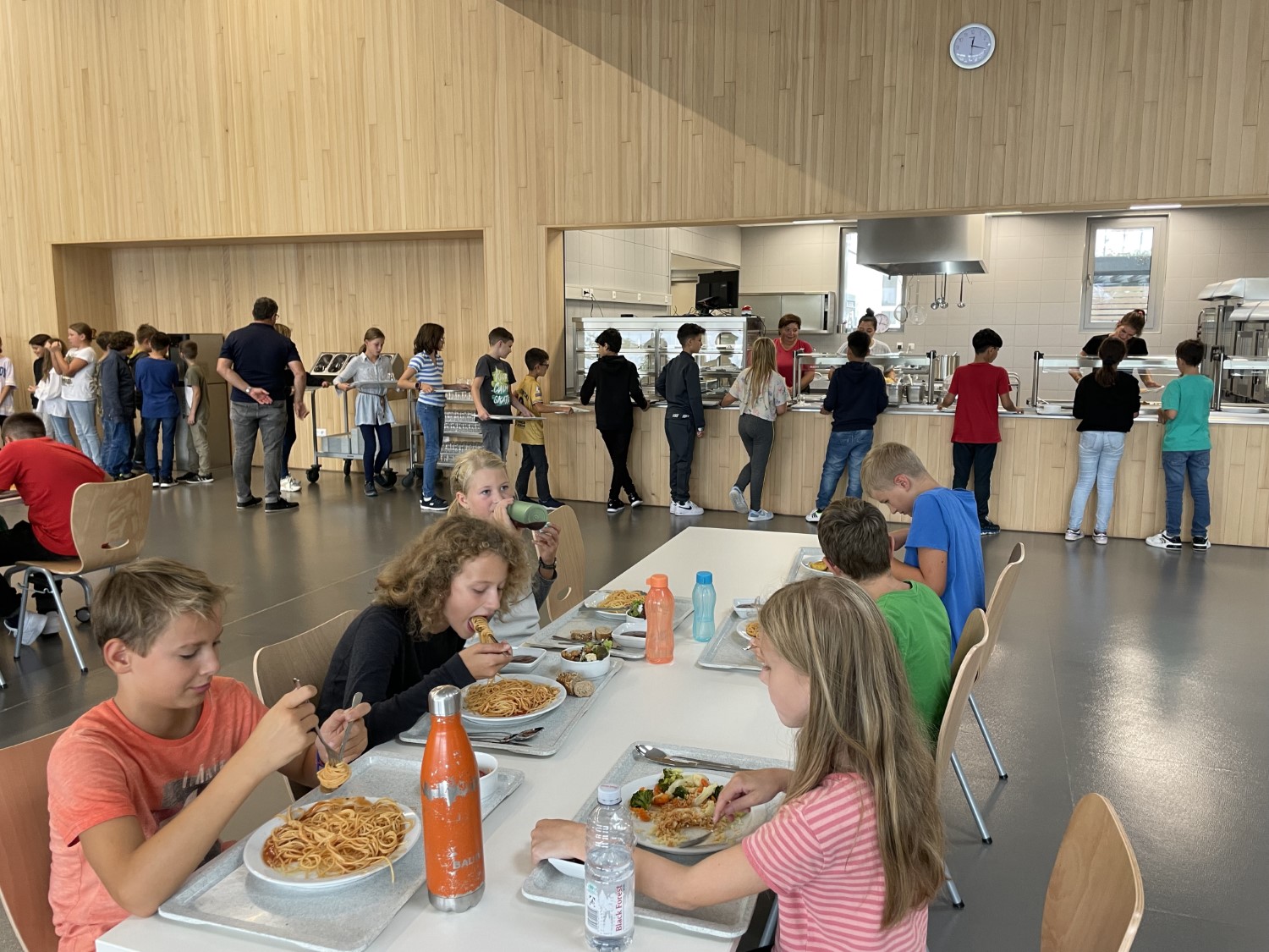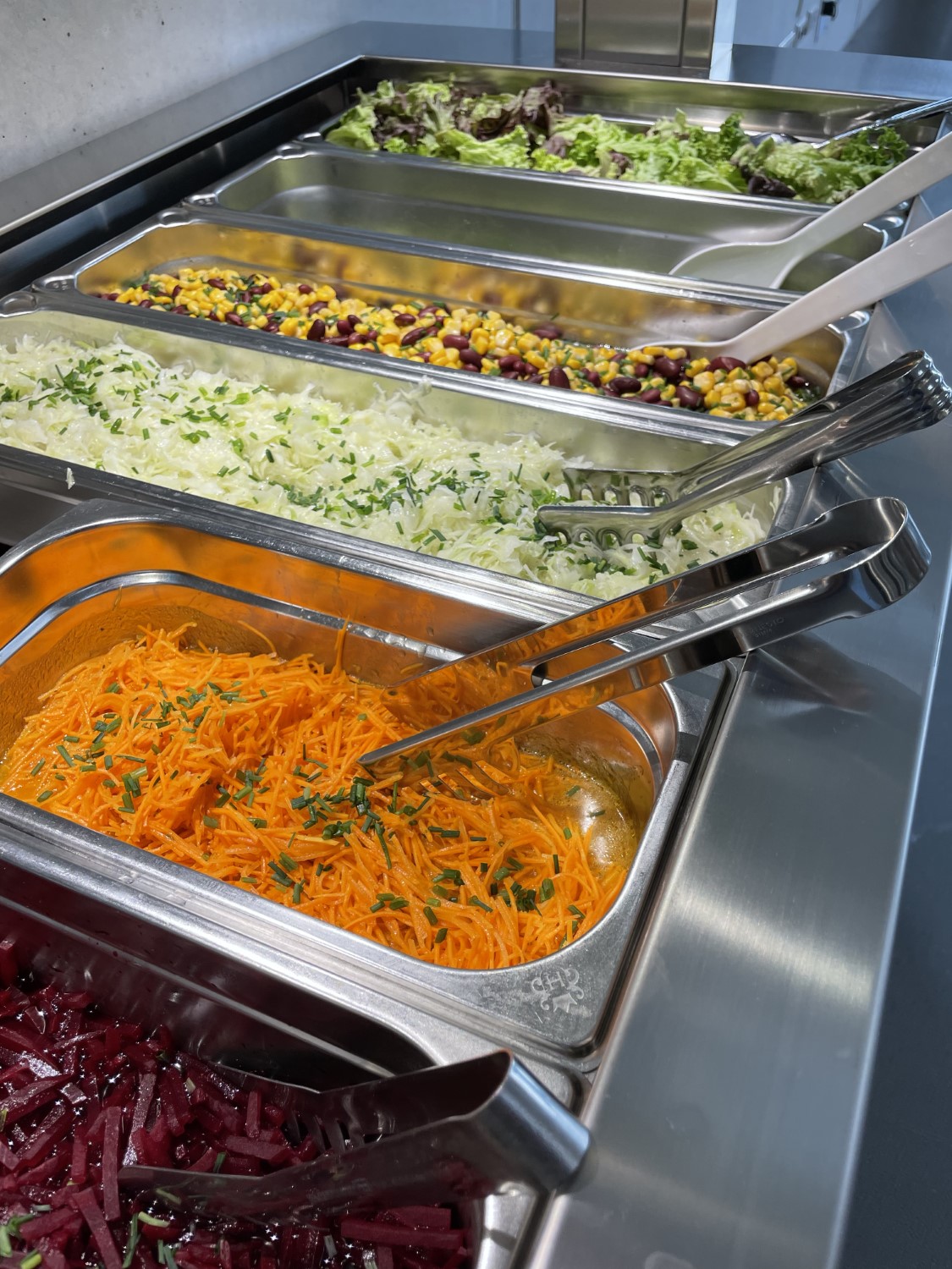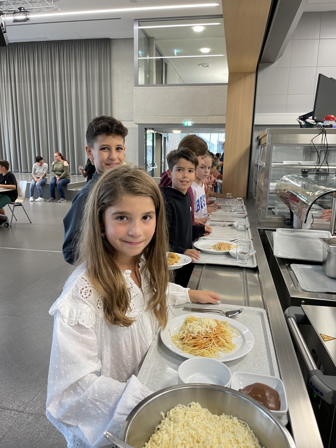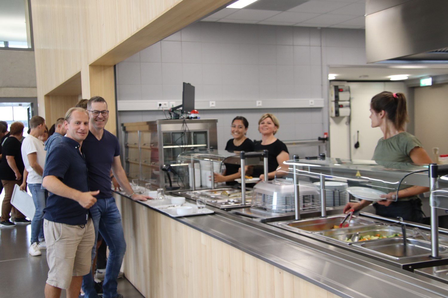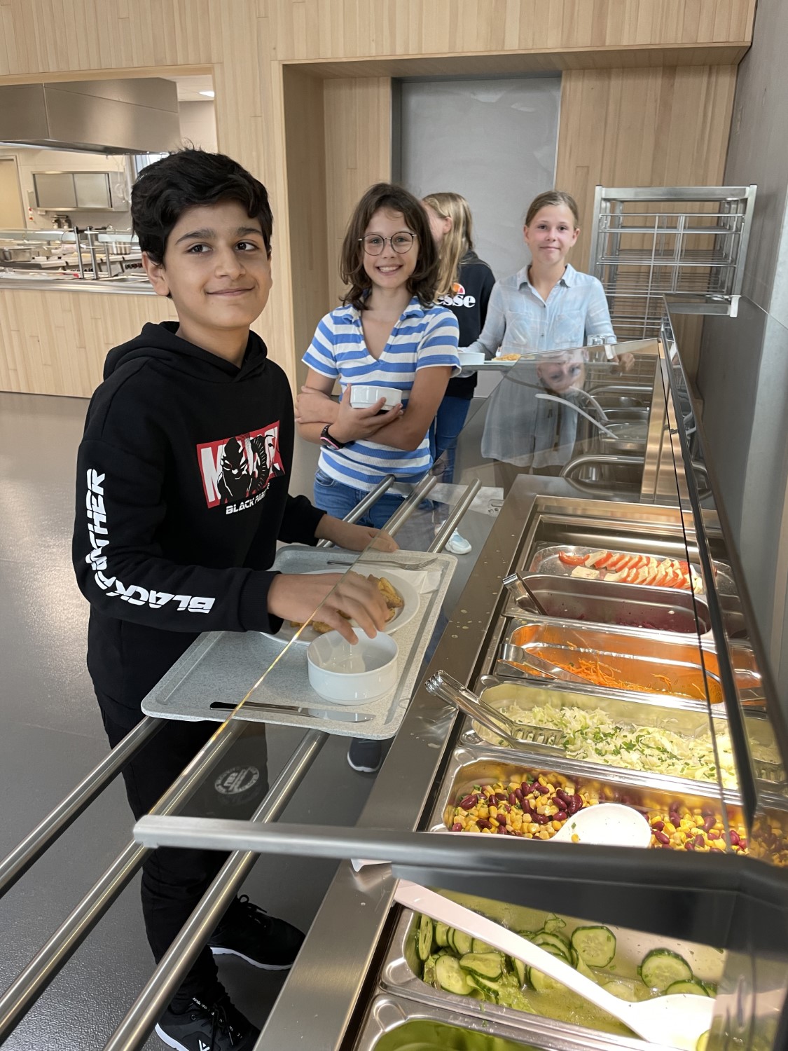 Pünktlich zum Schulstart durften bereits die neuen 5. Klassen und Lehrer ein Probe-Essen mit dem neuen Caterer der Mensa durchführen und alle waren sich einig: das Essen schmeckt super! Jeden Tag wird neben einem Fleischgericht auch eine vegetarische Option und ein „Spontan-Essen“ sowie ein tolles Salatbuffet angeboten!