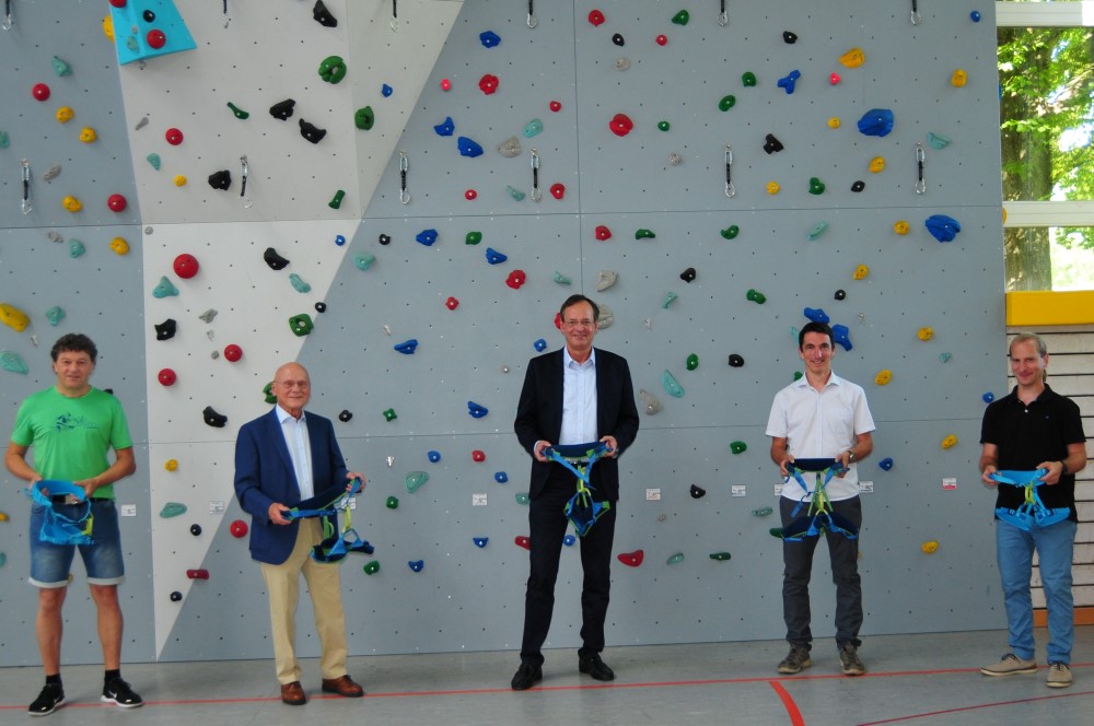 Realschulkonrektor Huber und AG-Leiter Johannes Baßler konnten am Donnerstag 20 Klettergurte vom Stiftungsvorsitzenden OB Braun und seinem Stellevertreter H. J. Müller in Empfang nehmen. Durch die neue Kletterwand der Realschule, die durch Spenden finanziert wurde, wird Klettersport im Unterricht integriert, als AG angeboten und ist eine prima Ergänzung im Angebot der Ganztagesbetreuung. Eine sehr sinnvolle Spende, denn „neben gesunder Bewegung durch das Sportklettern wird auch Willensstärke, Konzentrationsvermögen und Teamfähigkeit gefördert“, ist OB Braun überzeugt.