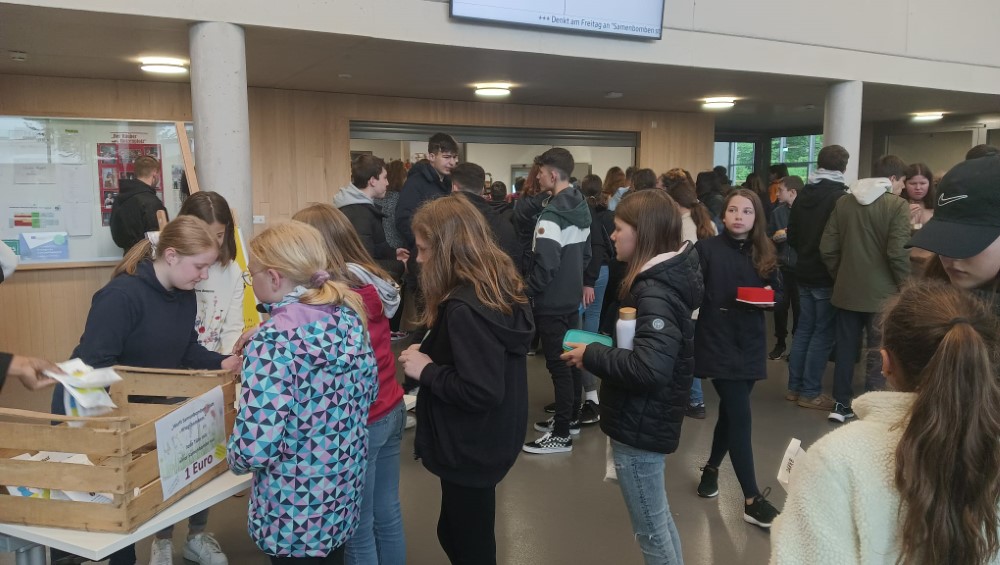Eine tolle Aktion hat sich die Umwelt-AG „Change the Future“ ausgedacht. Bereits im Mai wurden eigenhändig Samenbomben hergestellt. Der Samen wurde von der Stadt Oberkirch gespendet und beinhaltet ausschließlich heimische Gras- und Blumensorten. Für nur 1 Euro konnten die Schülerinnen und Schüler der RSO in einer Verkaufsaktion mit dem Motto „Werft Samenbomben statt Kriegsbomben“ eine Samenbomben-Tüte kaufen. Von dem Erlös wurden 150 Euro an die Ukraine-Hilfe gespendet.