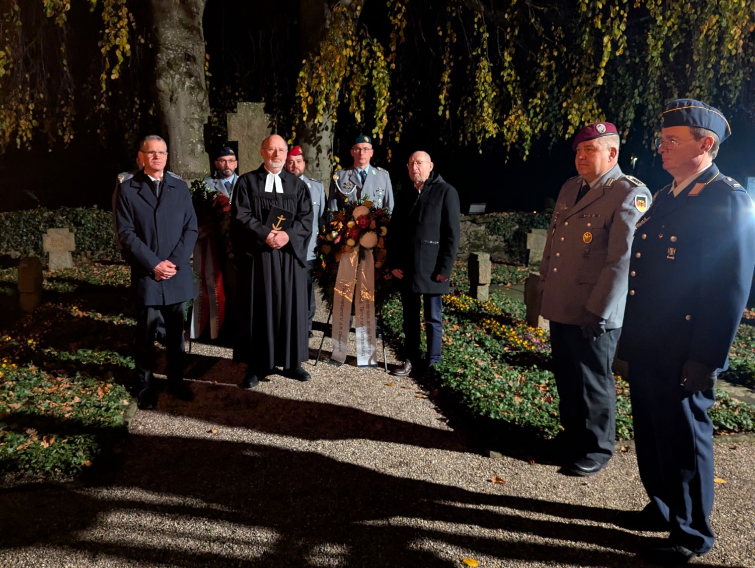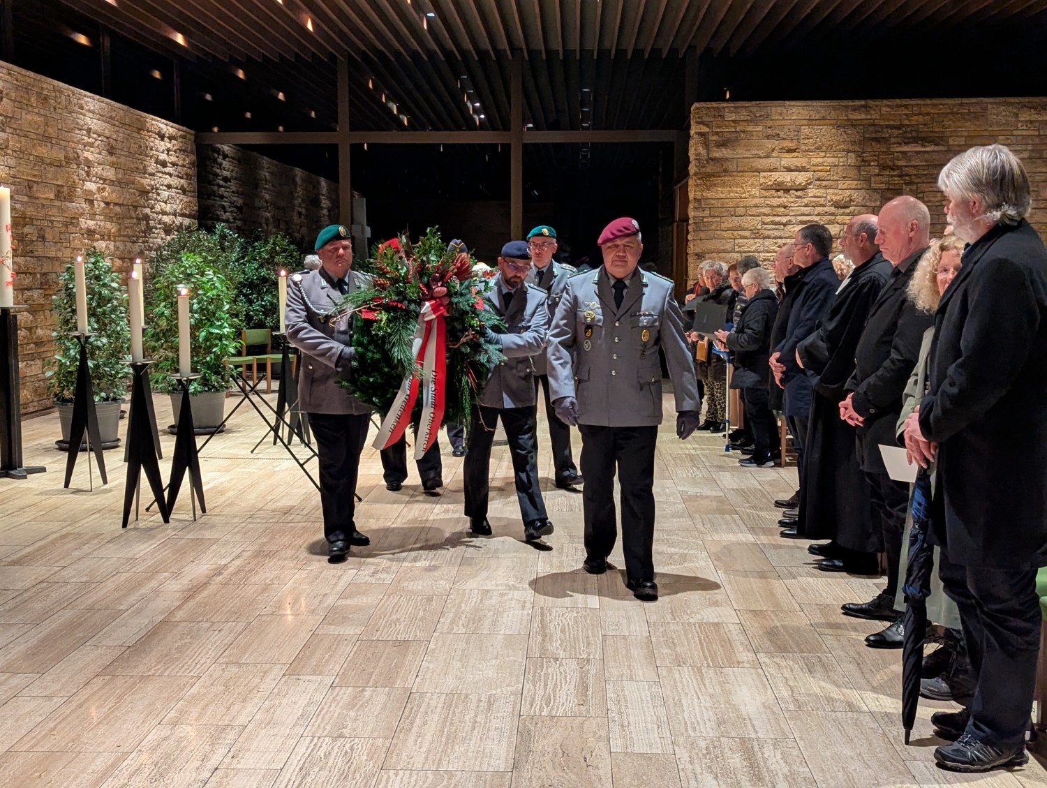Gedenkkränze werden von der Ehrenformation der Reservistenkameradschaft zum Ehrenfriedhof gebracht
