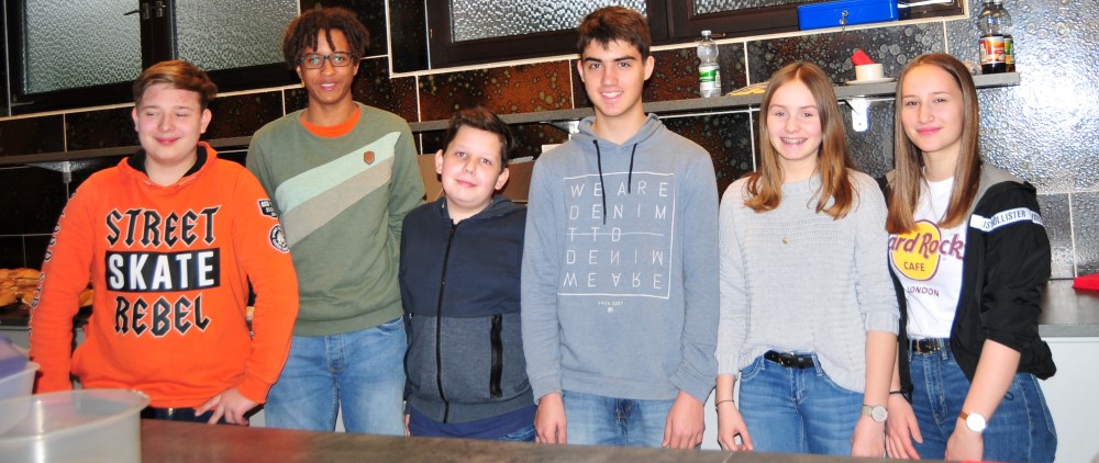 Schülerinnen und Schüler der Klasse 9e beim Catering