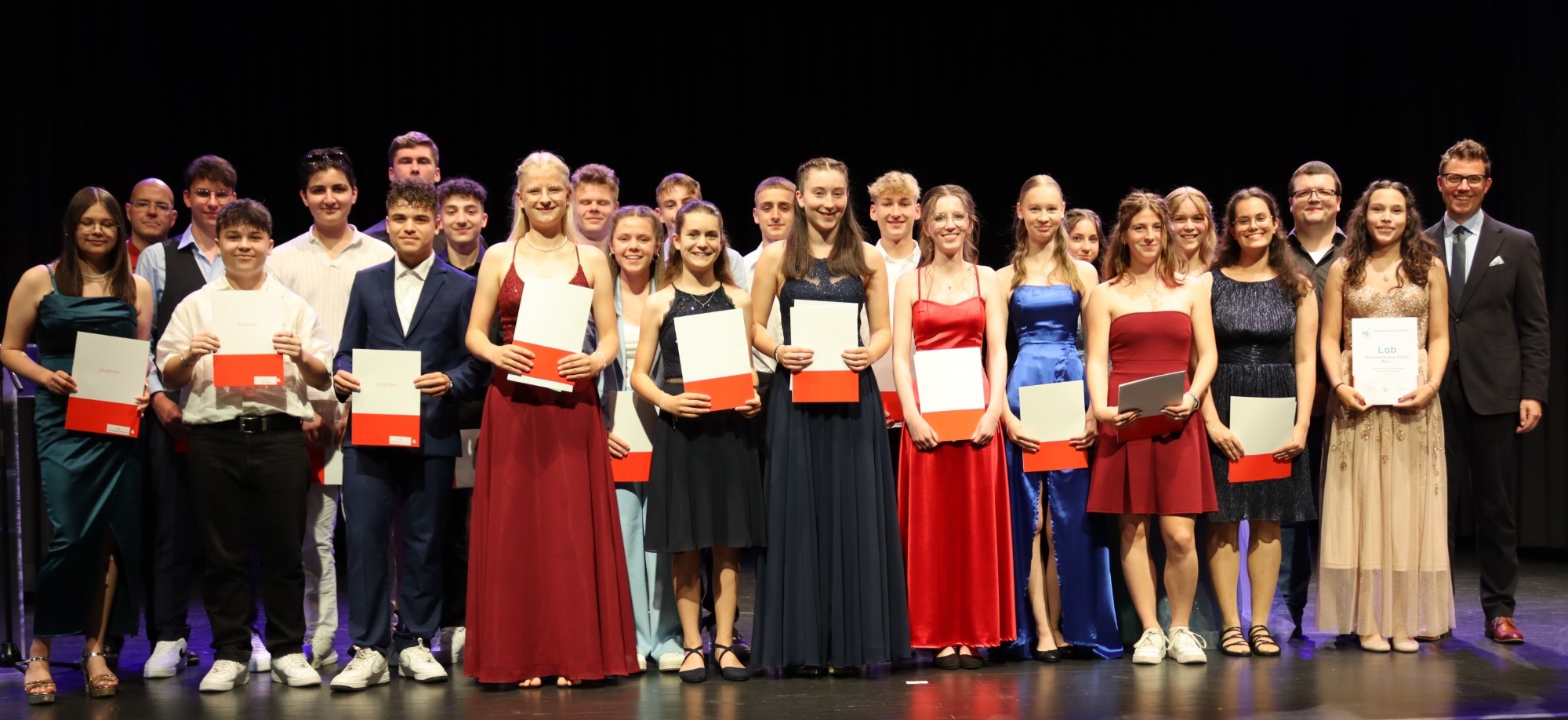 10d Mittlere Reife-Absolventen mit Klassenlehrer Lars Seifert, Rektor Franz und OB Bühler